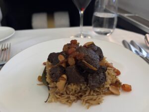 The crew later came around with what might be my favorite part of the whole journey: a warm cup of traditional Omani coffee and a date, served with a genuine smile. Dining service was equally elegant. The crew didn’t rush anything, instead offering a restaurant-style experience with carefully plated dishes and plenty of choice, either with an Omani heritage or more classic intercontinental favs,