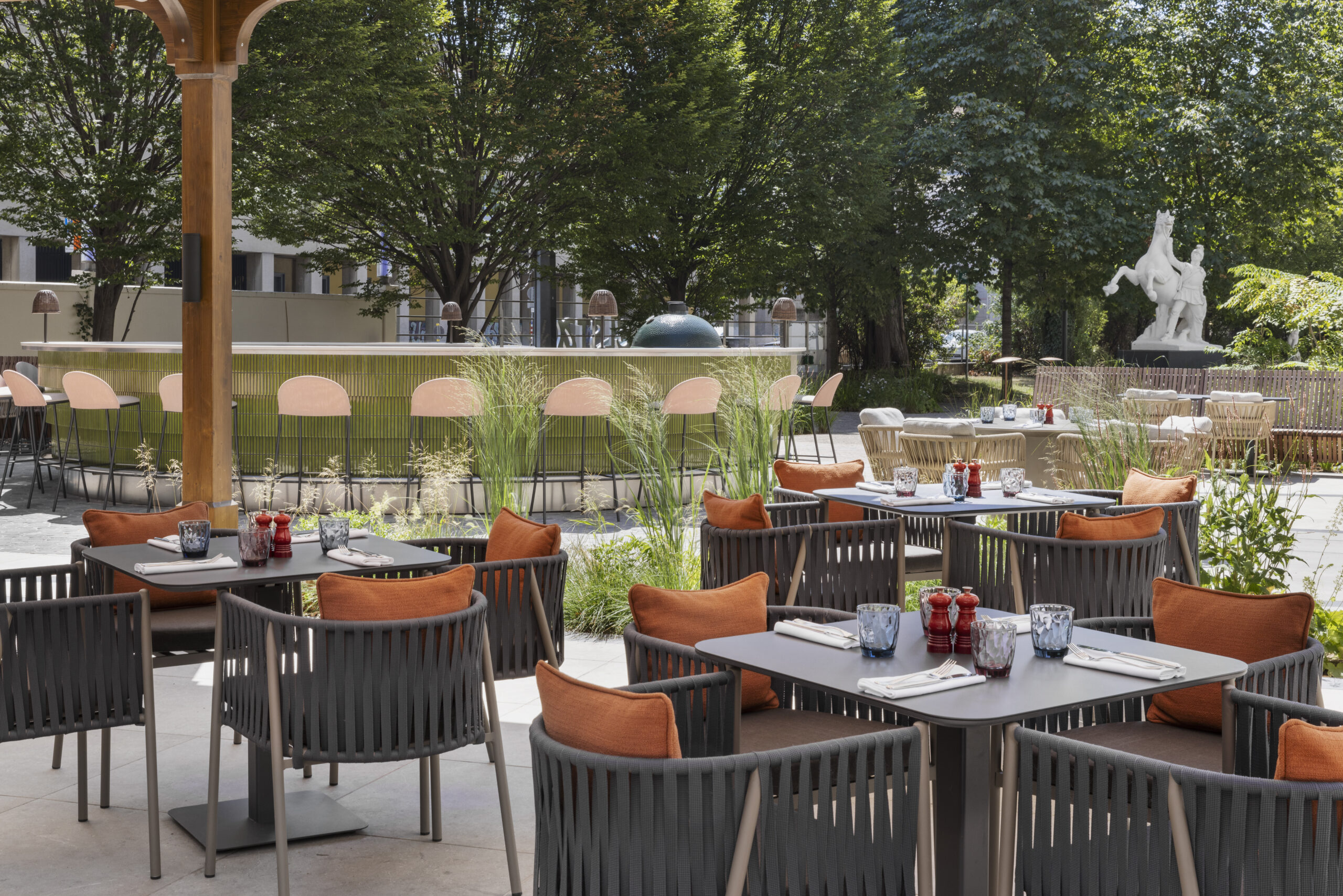 The food and beverage program centers around Elstar – The Garden, the signature restaurant situated in the property’s extensive garden space. The restaurant is a key attraction for both guests and local residents, serving as a hub for both formal and relaxed dining. The bar, The Farrier, offers creative cocktails in the sophisticated setting of the former riding hall, while the Cameo take-away caters to guests requiring convenience. For recreation, the hotel provides a 450 m² wellness area complete with a pool.