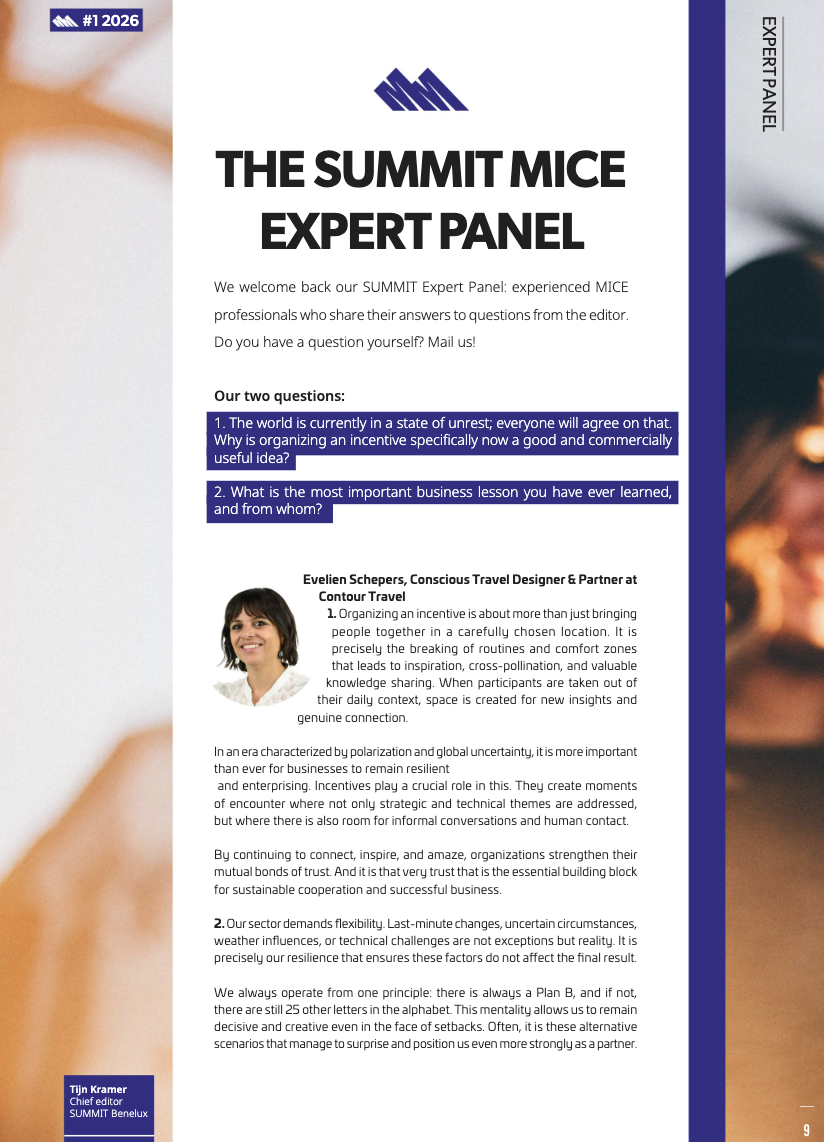 The MICE Expert Panel is a small team of experts who are kind enough to share their insights in every issue of Summit Benelux. As always we ask the two questions.